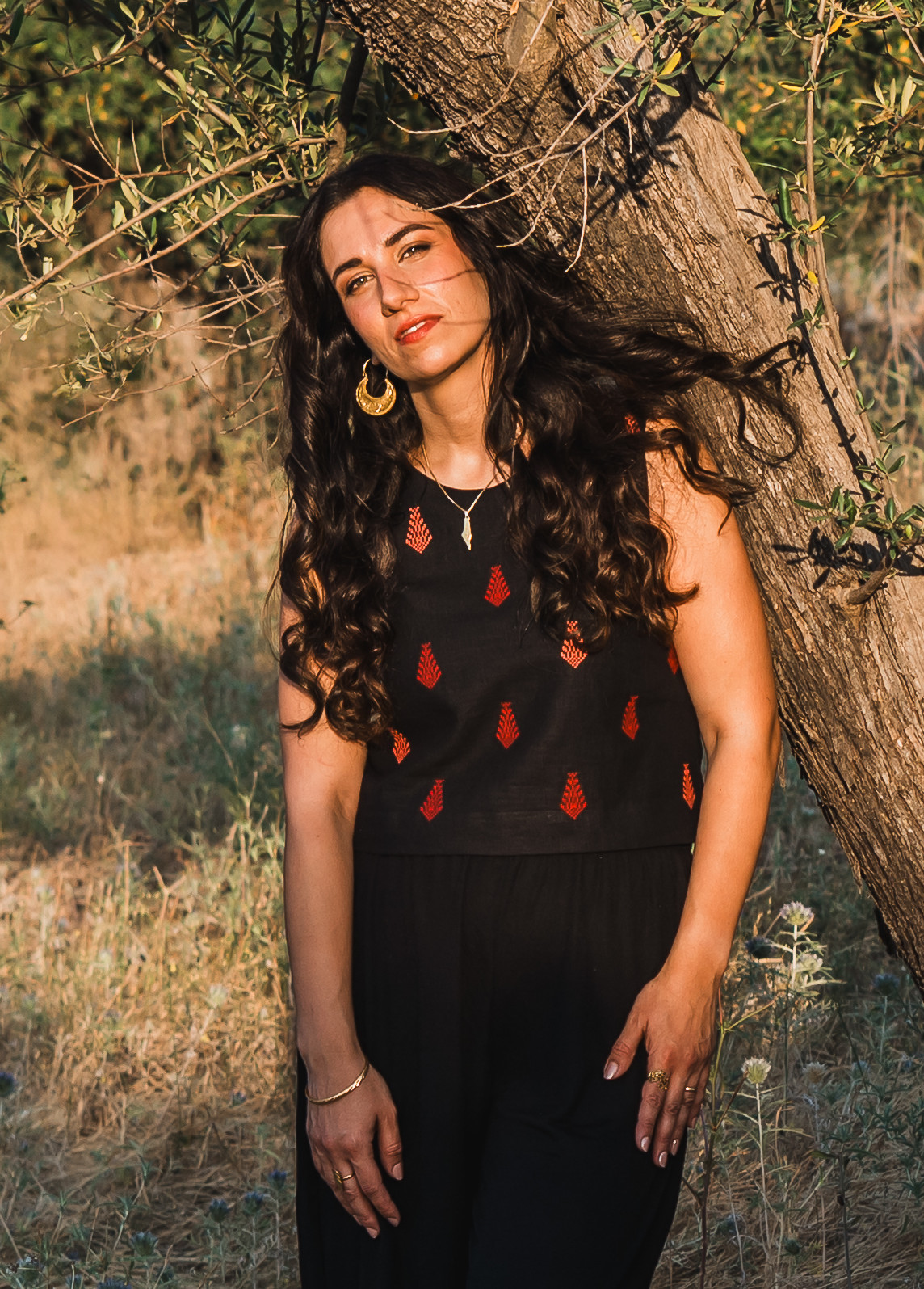 The Saru Top features the famous cypress “saru” tree motif from Al-Khalil with an all-over-embroidery in two beautiful shades of red.